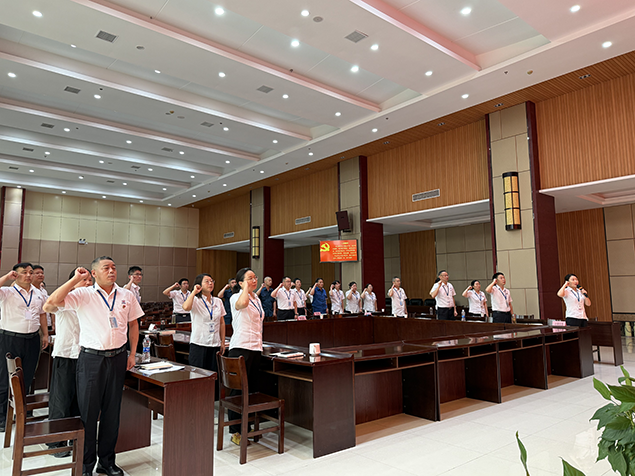齐唱国歌,重温誓词,在金年会党委副书记、资金管理部经理万善武的带领下,新发展党员罗雄、张然等3人上台庄严宣誓,感受作为一名新党员神圣而激动人心的时刻。随后,金年会行管支部书记、工会主席熊海娟领誓,全体老党员重温入党誓词,以铿锵誓言叩问入党初心,以坚定信念强化责任担当。