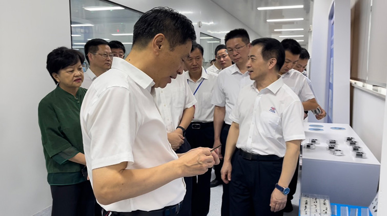 参会领导一来到金年会电气,就深入企业生产一线,了解生产经营和重点项目落地情况。在金年会集团光电工厂,金年会电气董事长、总经理赵世运首先汇报了公司在立项争资、技改提能方面开展的工作和取得的成效,并陪同领导现场参观了红外光电子元器件智能化生产线。